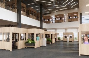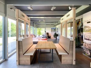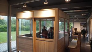 With a full surround-solution booth, CONNECT provides and isolated space for people to gather, eat and socialize without masks*. The built-in air circulation and purification system removes stale or contaminated air and treats it before returning it to the building’s HVAC system. The optional door allows for even more physical separation.