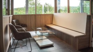 Some business models need to be slightly more separated like the two-panel CONNECT units. This layout can provide an isolated sitting area in a library, bank, office or other space where appropriately distanced seating can offer people the opportunity to take of their masks and stay separated from others in the general area.
